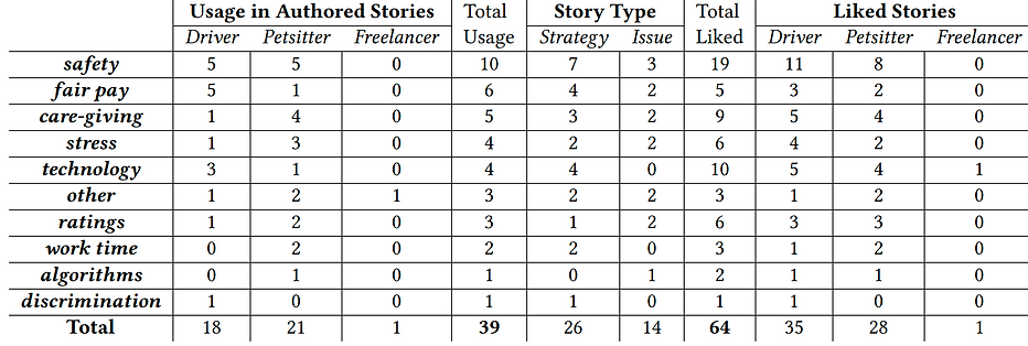 Analysis: We used a mixed-methods approach, combining quantitative analysis of usage data from the system backend with qualitative open coding of onboarding and exit interviews to explore workers' interactions with the app.
